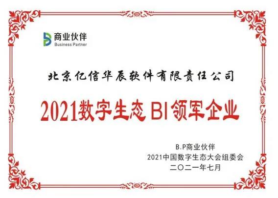 億信華辰受邀出席2021數字生態大會,并憑借一站式數據分析平臺-億信ABI榮獲“2021數字生態BI領軍企業”。