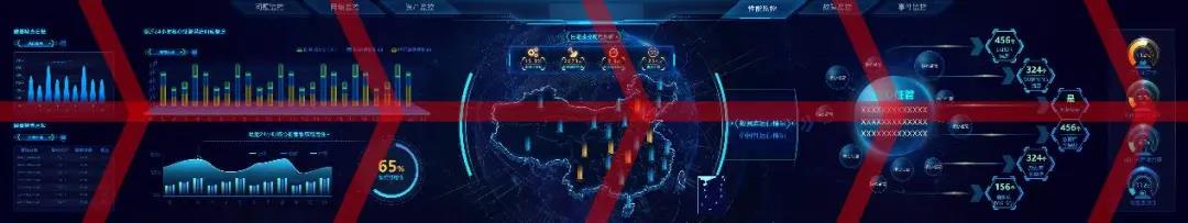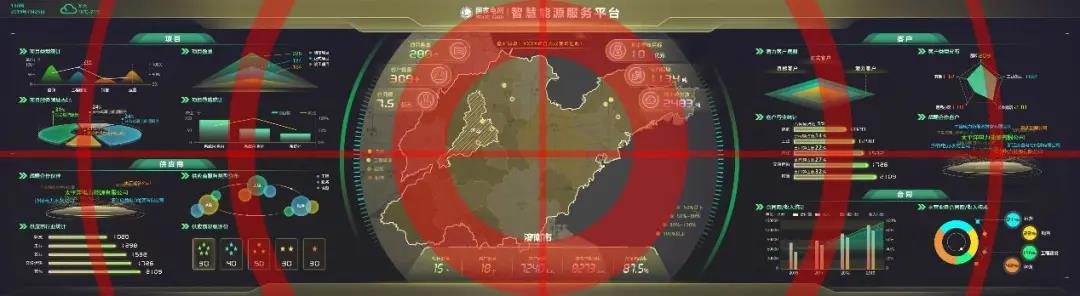再者,設(shè)計(jì)人員需要明確大屏的視覺路線即展示路線,這條線能講出怎樣的故事跟你的布局構(gòu)圖密切相關(guān)。下面提供幾種常見的構(gòu)圖思路,希望對(duì)大家有所啟發(fā)和幫助。 1、中心放射型 以中間核心內(nèi)容向周圍放射,正中多以地圖和給人視覺沖擊的主視覺為主,起到聚焦凸顯的作用,層次明晰,主次分明。