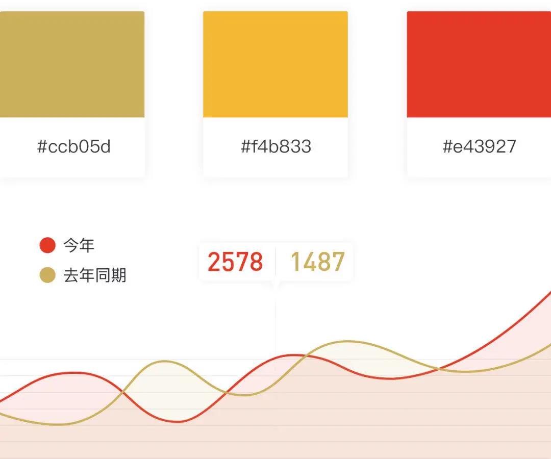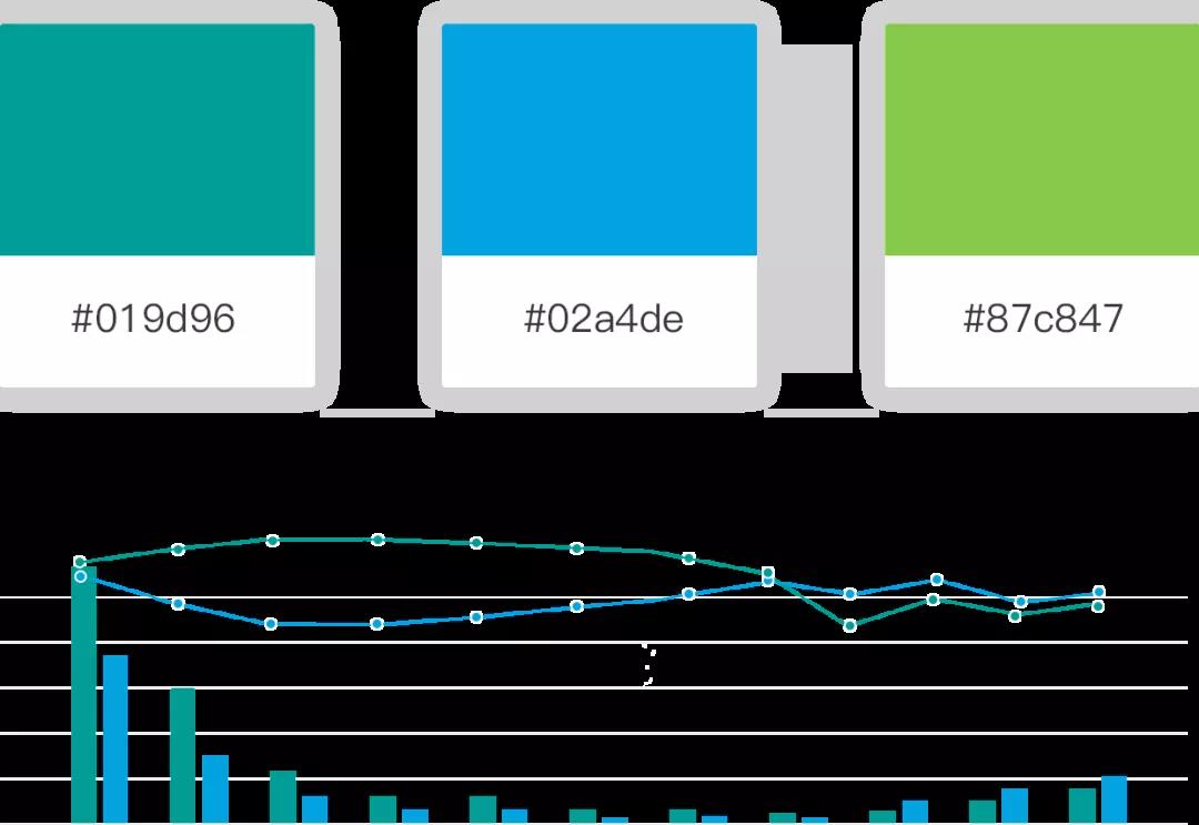 除了與背景的配色對(duì)比外,圖表本身的顏色選擇也很重要,要利于業(yè)務(wù)信息傳達(dá)。選擇的顏色不要過(guò)于相近,這樣不利于數(shù)據(jù)間的區(qū)分,會(huì)降低閱讀舒適感。